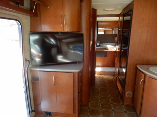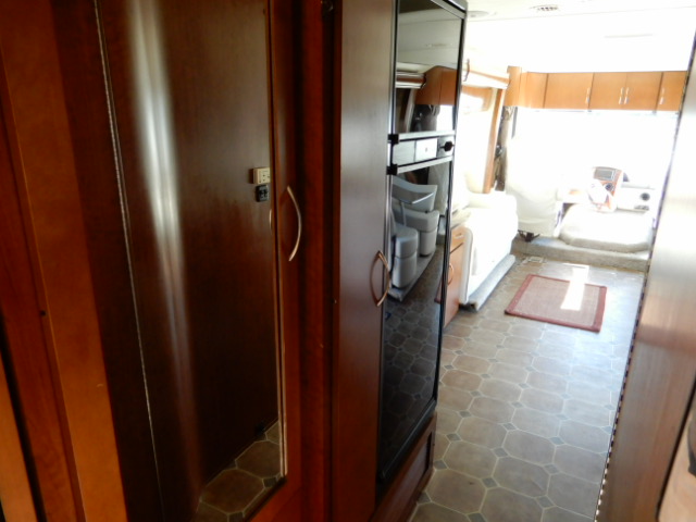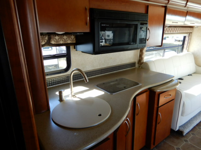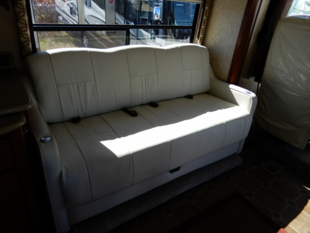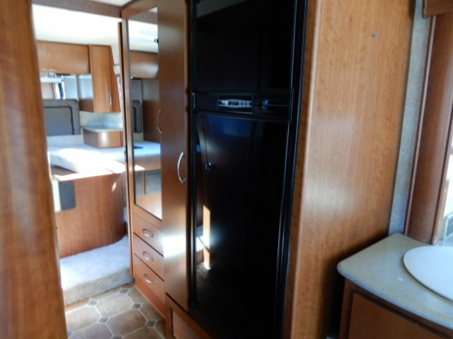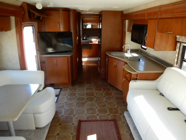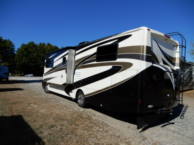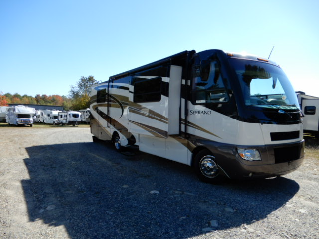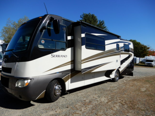 2010 Thor Motor Coach Serrano 31V, built on the Workhorse W20 chassis and powered by a fuel-efficient 6.4L Maxx Force diesel engine, this coach has just 33,077 miles and is ready to hit the road. At just over 32 feet long, it’s the perfect size for those wanting Class A comfort without the bulk. The 31V floorplan features two slide-outs that open up the living space beautifully. In the rear, you’ll find a private bedroom with a walk-around queen bed, large wardrobe, and overhead cabinets for plenty of storage. The mid-coach bath includes a roomy corner shower, vanity, and toilet, giving you all the comforts of home. The main living area offers a jackknife sofa and booth dinette both of which convert for extra sleeping space alongside a mid-ship entertainment center with a TV. The kitchen is fully equipped with solid surface countertops, a large round sink, 2-burner cooktop with oven, microwave, and a residential-style refrigerator. Additional highlights include a diesel generator, power patio awning, backup camera, automatic leveling jacks, and generous basement storage. If you’re looking for a smaller diesel coach that doesn’t compromise on features or comfort, this Serrano 31V is a great choice. Call Ocean Breeze RV to see this wonderful coach.